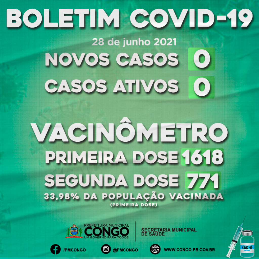A Prefeitura Municipal de Congo publica hoje um Boletim Epidemiológico do Coronavírus mais que especial. Nele os números de “Casos Ativos” e “Casos Confirmados” é igual a Zero.