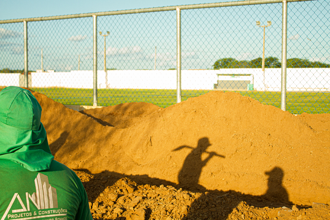 Construção das arquibancadas no estádio municipal segue em ritmo acelerado