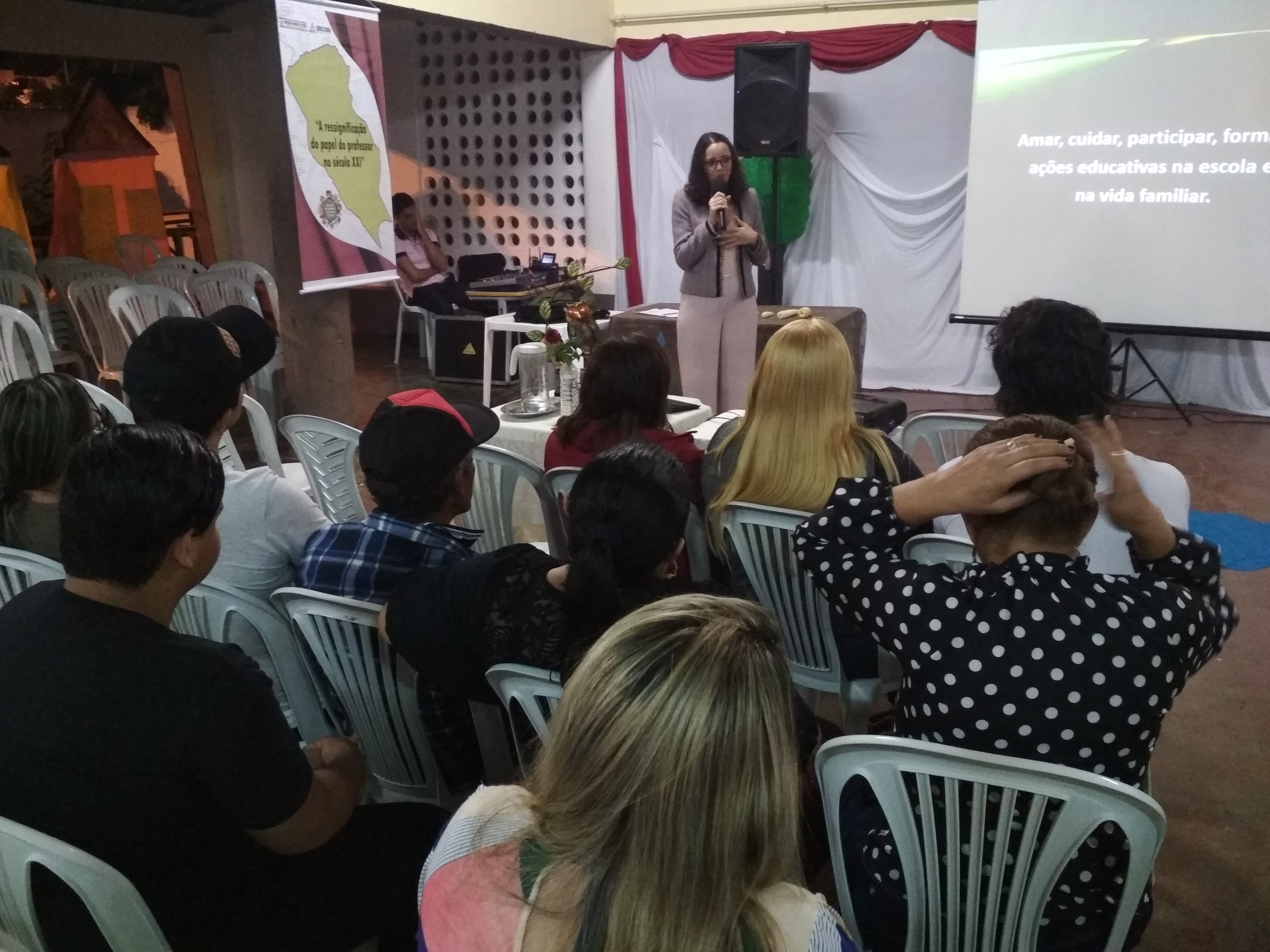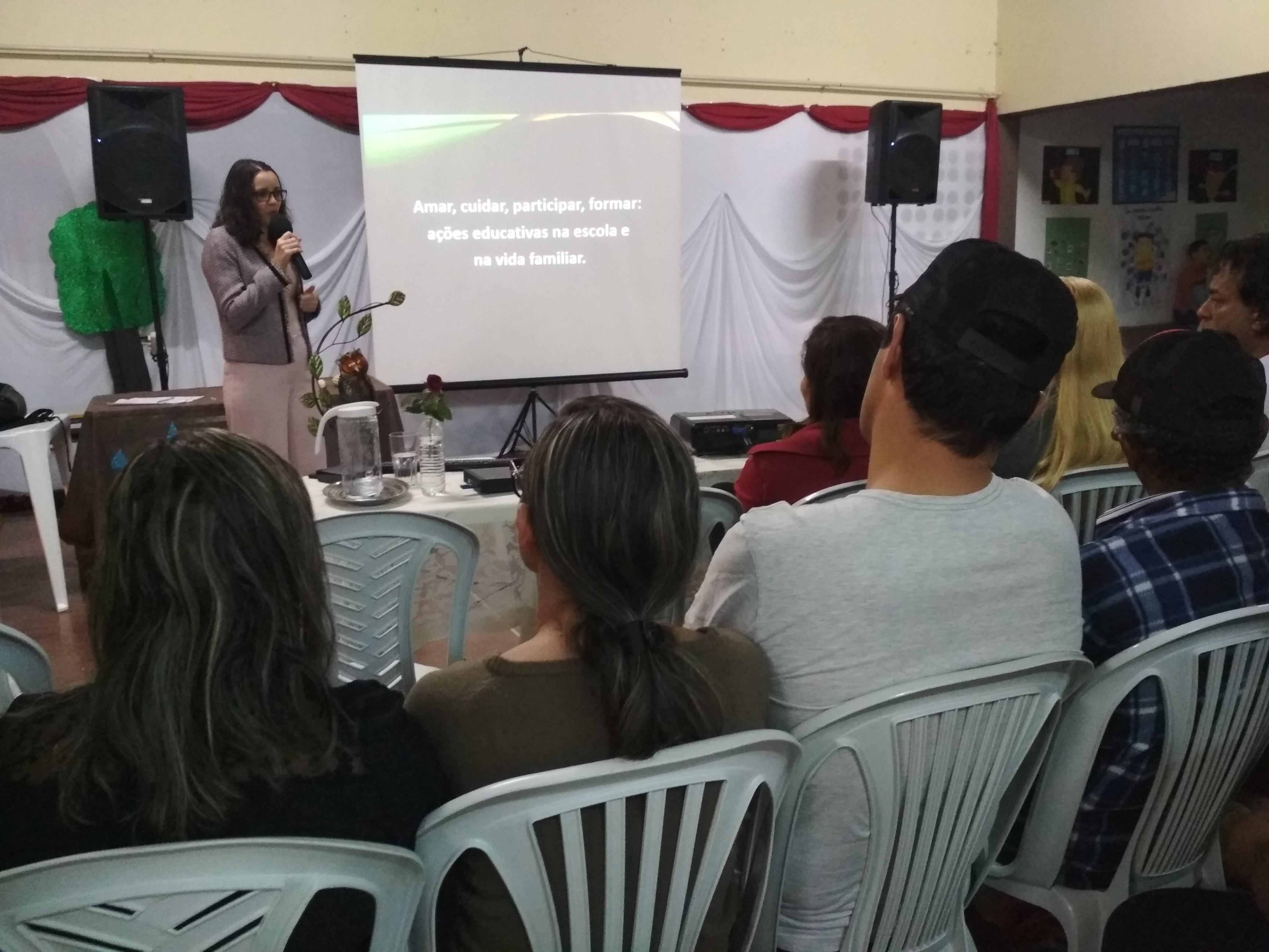 O período noturno foi reservado para uma palestra para os pais dos alunos o corpo docente da Rede Municipal de Ensino. Betânia Farias, ministrante da palestra, falou aos presentes da importância do diálogo entre escola e família no processo educacional, demonstrando a partir do seu conhecimento profissional a influência do contato com o meio em que vive na formação do indivíduo, desde os primeiros momentos da vida.