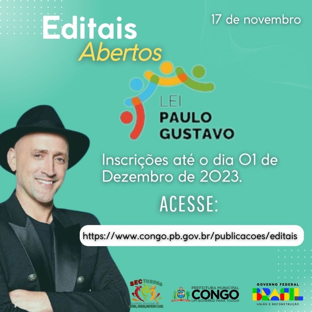 A Prefeitura Municipal de Congo através da Secretaria Municipal de Cultura Desportos e Lazer lança os aguardados editais da Lei Paulo Gustavo.