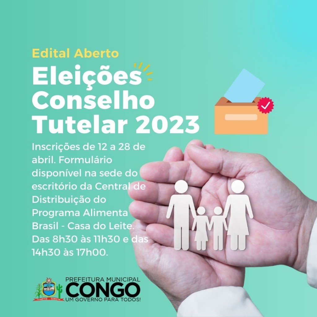 A Prefeitura Municipal de Congo, através da Secretaria de Administração dispõe o edital sobre a regulamentação do Processo Unificado de Escolha de Conselheiros Tutelares no Município para o mandato de 4 anos (MANDATO 2024/2027).