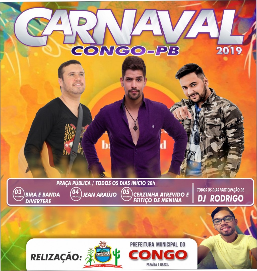 O tradicional carnaval de rua da cidade do Congo terá início no domingo (03) com shows ao vivo em praça pública nas três noites de folia carnavalesca.