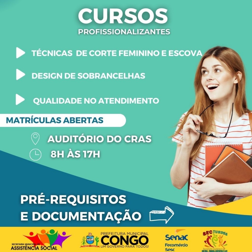 A Prefeitura Municipal de Congo em parceria com o Senac ofertará a população três cursos profissionalizantes, sendo eles: