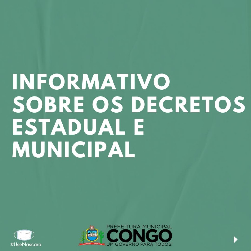 O município de Congo seguirá as medidas adotadas pelo novo decreto do Governo do Estado e dá outras providências.