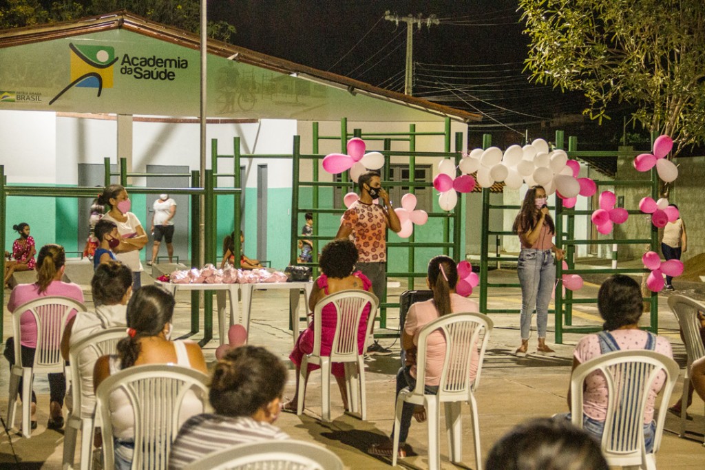 Dentro da programação do Outubro Rosa foi realizada uma palestra com o grupo de mulheres da Academia da Saúde. O diálogo contou com as presenças da vice-prefeita Flavinha, com a secretária de Saúde Sandra Ferreira, com o professor de educação física José Renato e foi conduzida pelo Médico Clínico Geral Reinier Miranda.