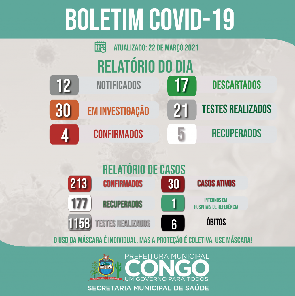 Hoje foram realizados 21 testes rápidos para o COVID-19. Destes 17 tiveram resultado negativo e foram descartados. Os outros 04 testaram positivo.