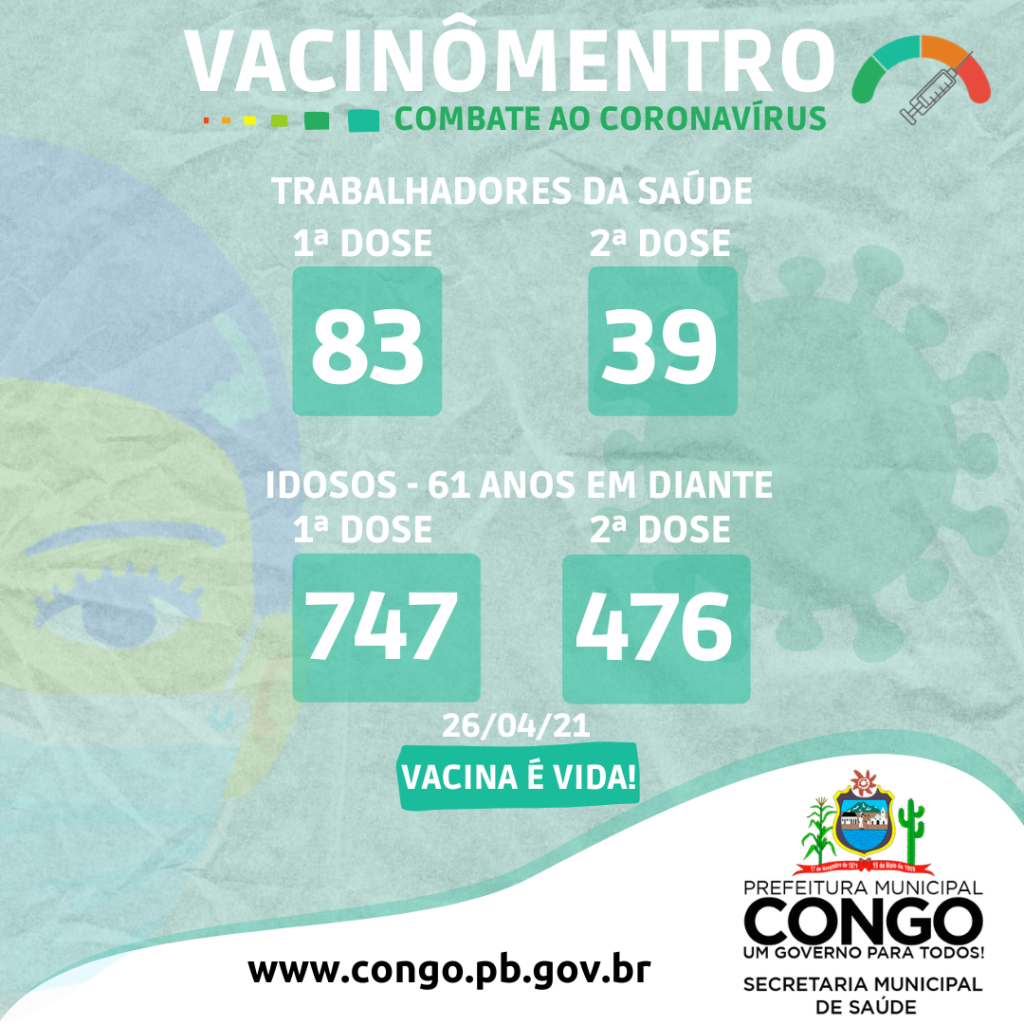 por Ascom - Prefeitura Municipal de Congo Publicado em 26/04/2021 às 18:41 2945 Visualizações