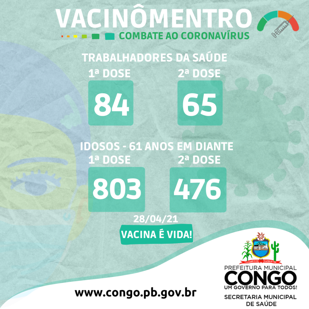 por Ascom - Prefeitura Municipal de Congo Publicado em 28/04/2021 às 19:09 2978 Visualizações
