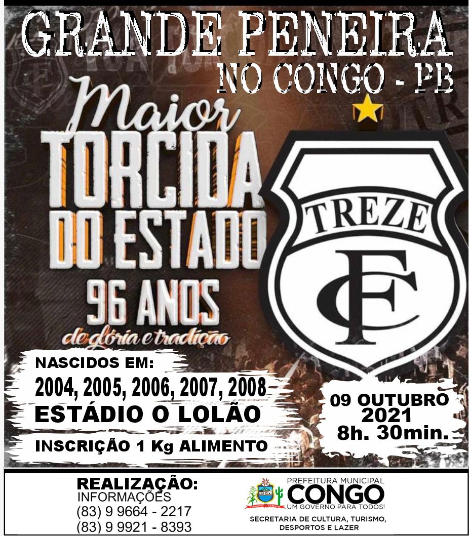 Local das Inscrições: Secretaria de Cultura , Turismo, Desportos e Lazer (em Frente a Prefeitura Municipal de Congo)