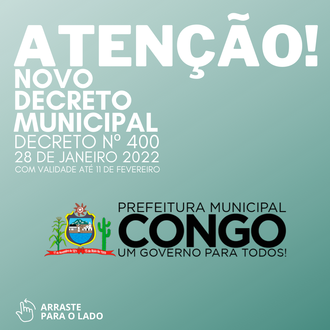 Atenção!: novo decreto municipal. Decreto nº 400
