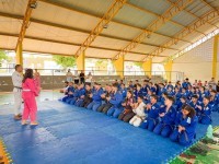 A atividade que aconteceu na quadra da Escola Municipal, contou com os alunos do serviço de convivência e fortalecimento de vínculos e com praticantes do esporte de outras cidades.