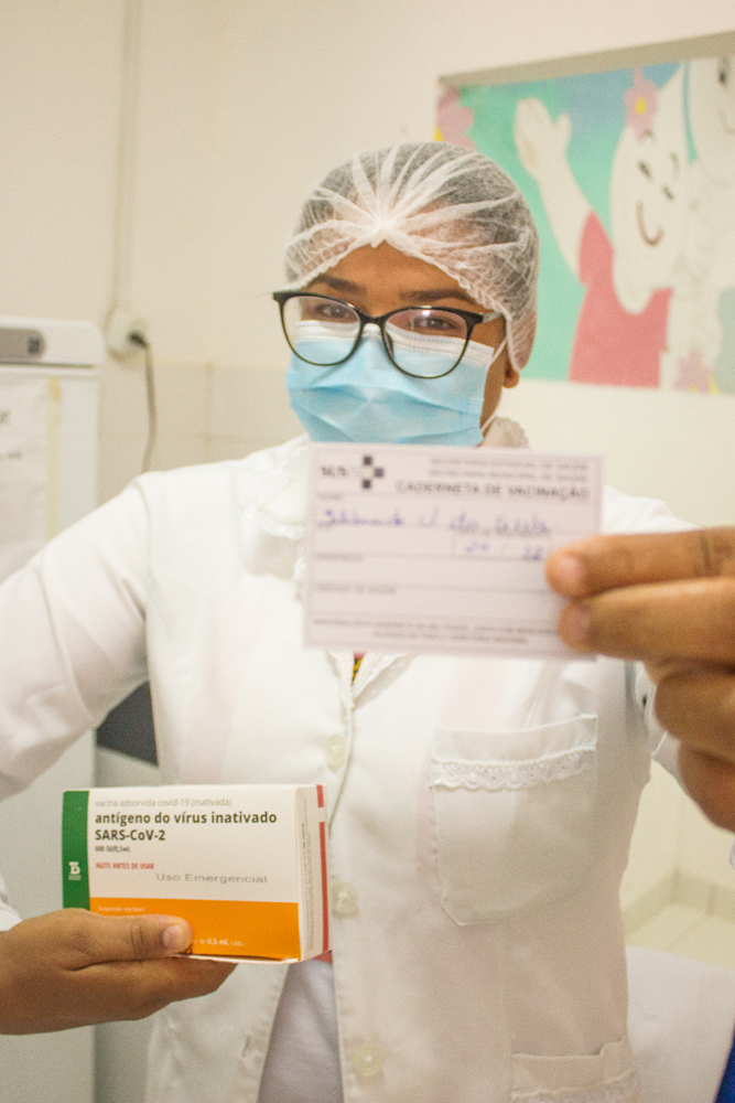 A primeira pessoa vacinada no nosso município é a técnica de enfermagem Silvaneide Victor da Silva, 42. Ela disse "estar muito feliz e honrada com esse momento histórico."