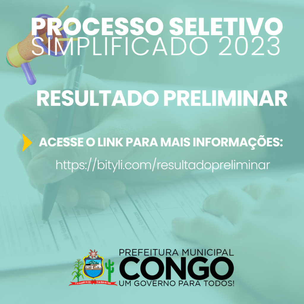 A Prefeitura Municipal de Congo divulga o resultado do Processo Seletivo Simplificado - 2023, para contratação temporária de profissionais.