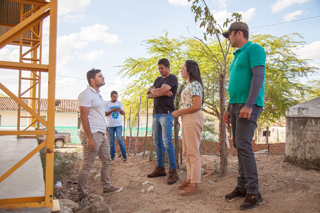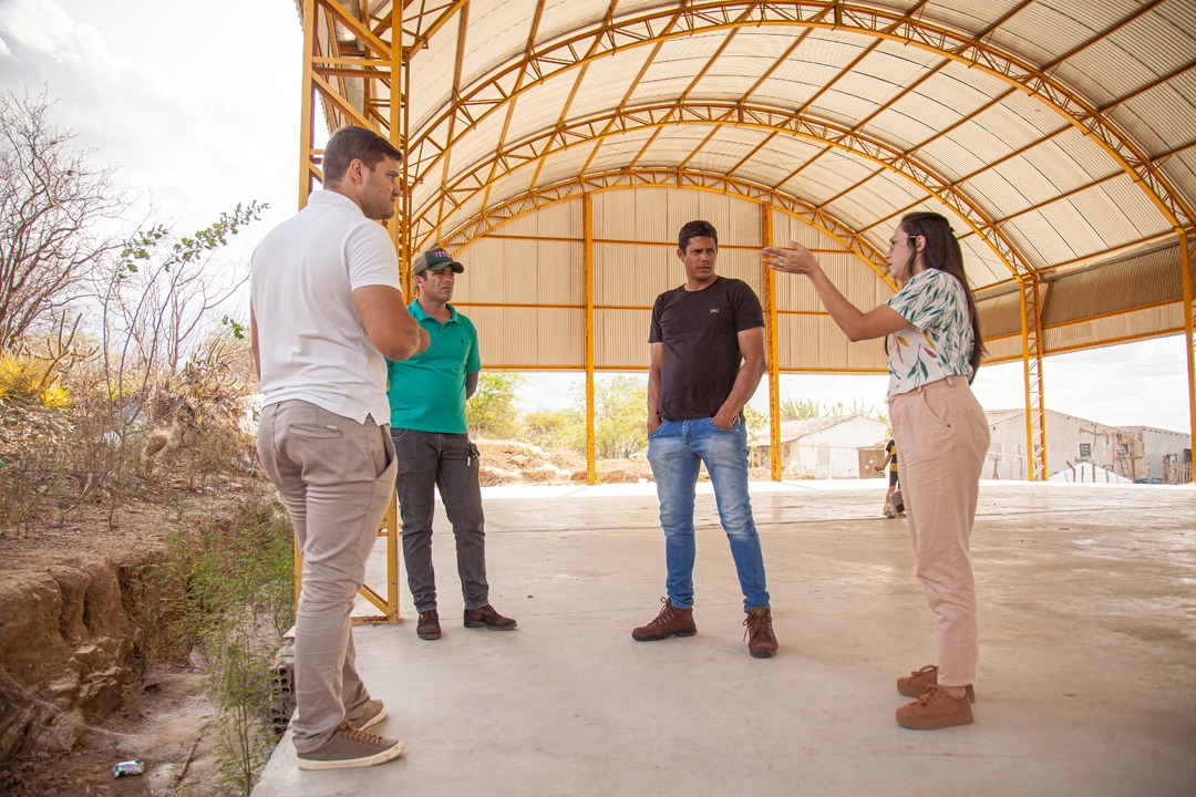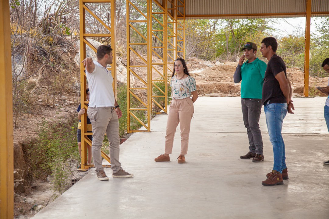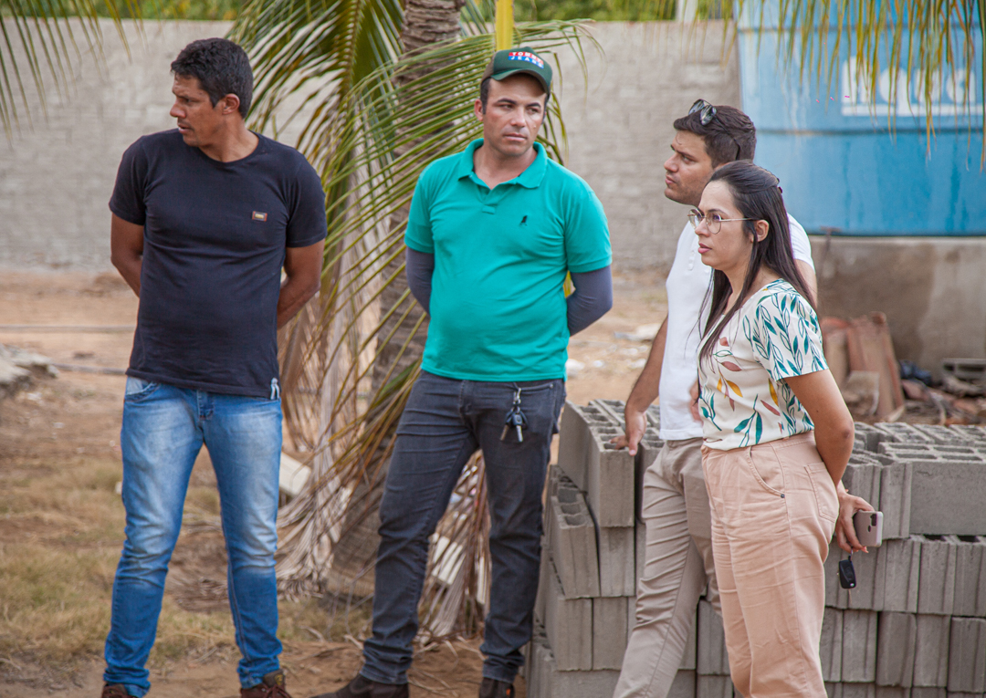 Nesta quinta feira (03), a prefeita Flavinha Sousa e o Secretário de Infraestrutura Arimatéia Queiroz, junto com o engenheiro Luiz Remigio, visitaram as obras da quadra poliesportiva da comunidade Laginha e a obra da clínica veterinária no bairro Prado.