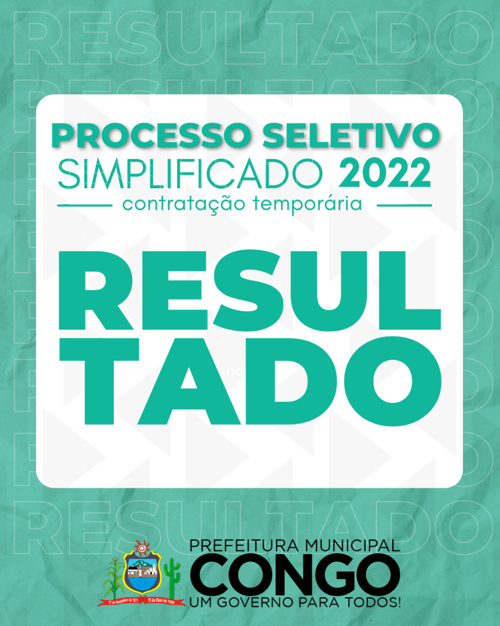 A Prefeitura Municipal de Congo divulga o resultado do Processo Seletivo Simplificado - 2022, para contratação temporária de profissionais para atuarem nas Escolas da Rede Municipal de Ensino de educação básica do município.